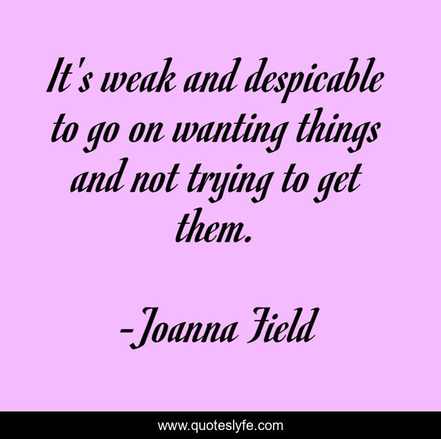 This page presents the quote "It's weak and despicable to go on wanting things and not trying to get them.". Author of this quote is Joanna Field. .