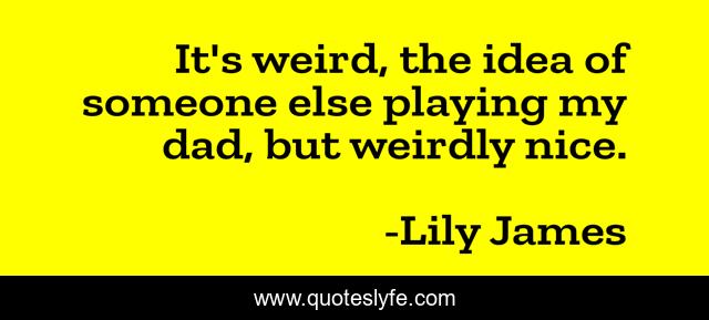 This page presents the quote "It's weird, the idea of someone else playing my dad, but weirdly nice.". Author of this quote is Lily James. This quote is about weird, idea, nice,.