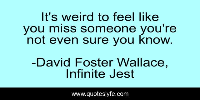 This page presents the quote "It's weird to feel like you miss someone you're not even sure you know.". Author of this quote is David Foster Wallace, Infinite Jest. This quote is about longing, loneliness,.
