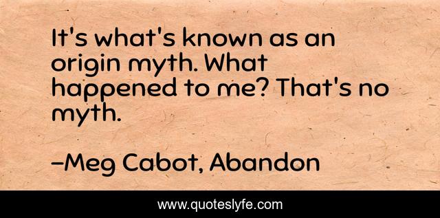 This page presents the quote "It's what's known as an origin myth. What happened to me? That's no myth.". Author of this quote is Meg Cabot, Abandon. This quote is about myths, persephone, death, pierce-oliviera,.