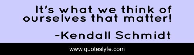 This page presents the quote "It's what we think of ourselves that matter!". Author of this quote is Kendall Schmidt. .