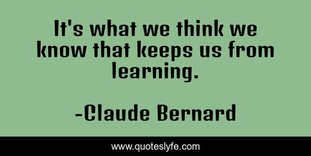 This page presents the quote "It's what we think we know that keeps us from learning.". Author of this quote is Claude Bernard. .