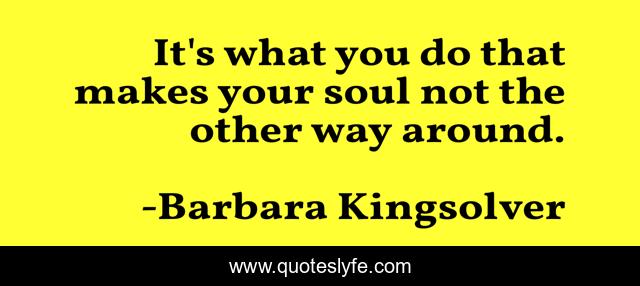 This page presents the quote "It's what you do that makes your soul not the other way around.". Author of this quote is Barbara Kingsolver. .