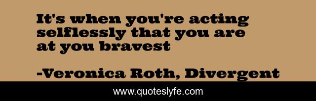 This page presents the quote "It's when you're acting selflessly that you are at you bravest". Author of this quote is Veronica Roth, Divergent. This quote is about selflessness, brave, true, divergent,.