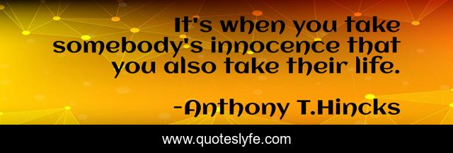 This page presents the quote "It's when you take somebody's innocence that you also take their life.". Author of this quote is Anthony T.Hincks. This quote is about life, somebody, philosophy, guilty, take, innocence, law,.