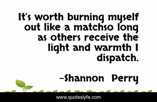 This page presents the quote "It’s worth burning myself out like a matchso long as others receive the light and warmth I dispatch.". Author of this quote is Shannon Perry. This quote is about stress, recovery, mental-health, depression, helping-others, happiness,.
