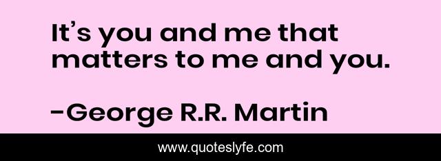This page presents the quote "It’s you and me that matters to me and you.". Author of this quote is George R.R. Martin. This quote is about truth, love, loyalty, affection,.