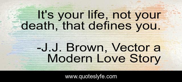 This page presents the quote "It's your life, not your death, that defines you.". Author of this quote is J.J. Brown, Vector a Modern Love Story. This quote is about life, death,.