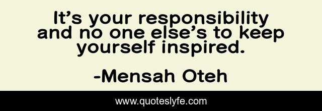 "Mensah Oteh Quotes." Quoteslyfe.com, 2025. Sat. 06 Dec. 2025. <https://www.quoteslyfe.com/quote/It-s-your-responsibility-and-no-one-49060>.