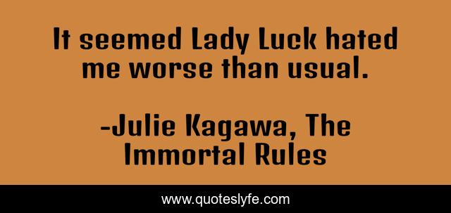 "Julie Kagawa, The Immortal Rules Quotes." Quoteslyfe.com, 2025. Sat. 06 Dec. 2025. <https://www.quoteslyfe.com/quote/It-seemed-Lady-Luck-hated-me-worse-7092>.