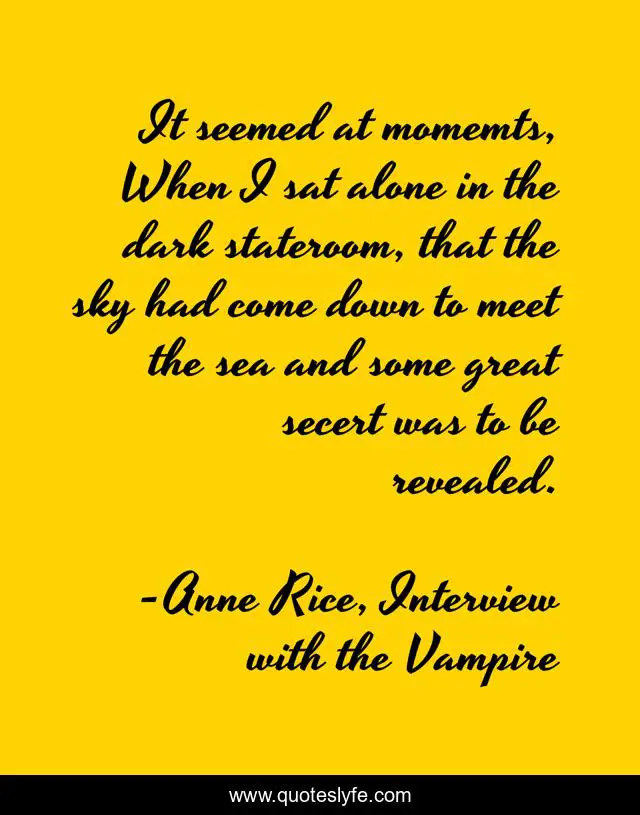 "Anne Rice, Interview with the Vampire Quotes." Quoteslyfe.com, 2025. Sat. 06 Dec. 2025. <https://www.quoteslyfe.com/quote/It-seemed-at-momemts-When-I-sat-212281>.