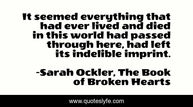 "Sarah Ockler, The Book of Broken Hearts Quotes." Quoteslyfe.com, 2025. Mon. 08 Dec. 2025. <https://www.quoteslyfe.com/quote/It-seemed-everything-that-had-ever-lived-192463>.