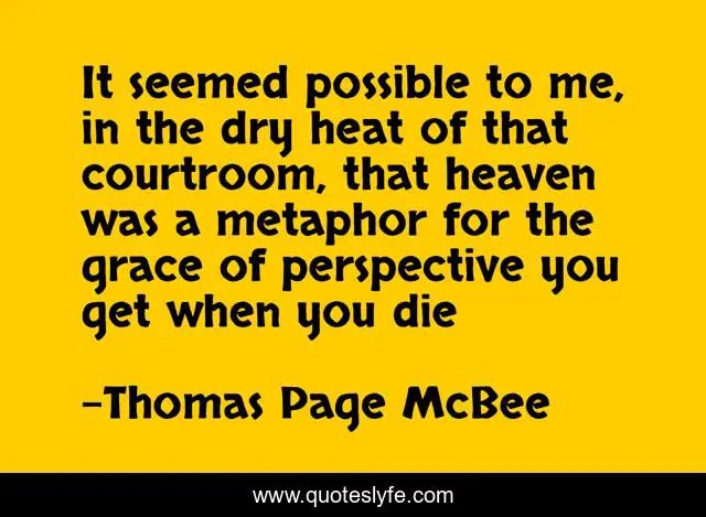 This page presents the quote "It seemed possible to me, in the dry heat of that courtroom, that heaven was a metaphor for the grace of perspective you get when you die". Author of this quote is Thomas Page McBee. .