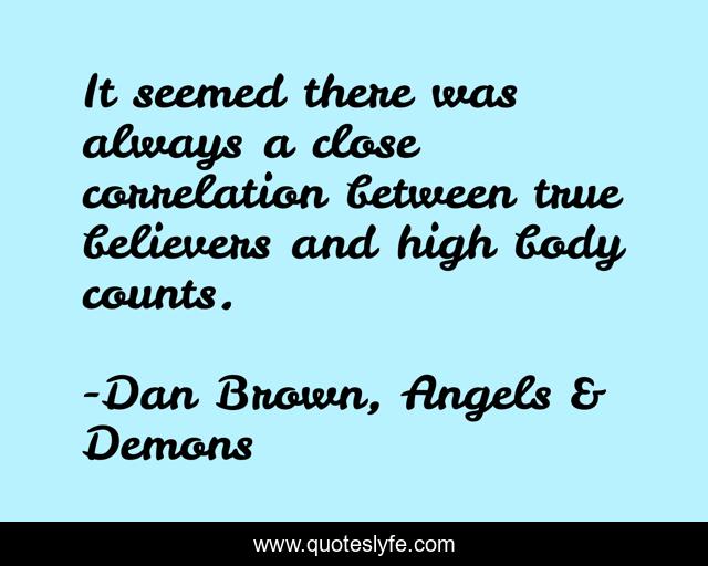This page presents the quote "It seemed there was always a close correlation between true believers and high body counts.". Author of this quote is Dan Brown, Angels & Demons. .