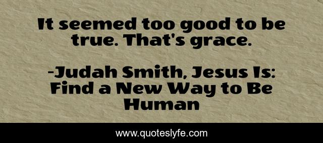 This page presents the quote "It seemed too good to be true. That's grace.". Author of this quote is Judah Smith, Jesus Is: Find a New Way to Be Human. .