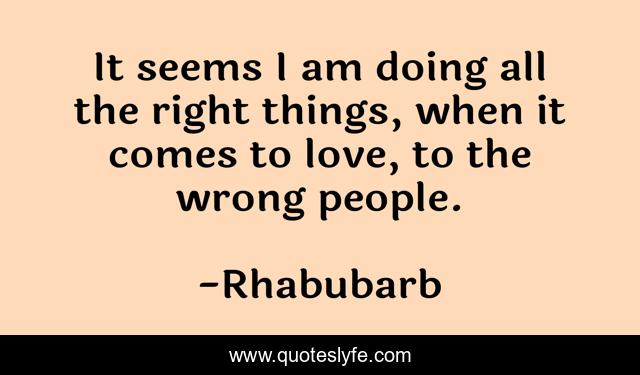This page presents the quote "It seems I am doing all the right things, when it comes to love, to the wrong people.". Author of this quote is Rhabubarb. This quote is about love, affection, sad,.