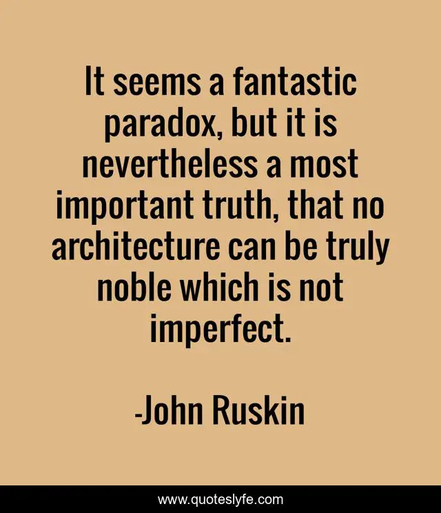 It seems a fantastic paradox, but it is nevertheless a most important truth, that no architecture can be truly noble which is not imperfect.