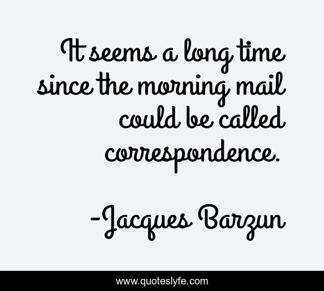 This page presents the quote "It seems a long time since the morning mail could be called correspondence.". Author of this quote is Jacques Barzun. This quote is about morning, long, time,.