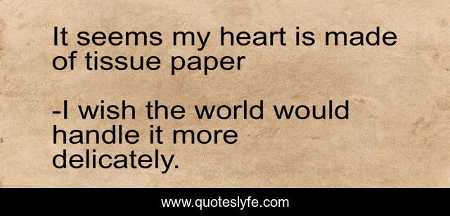 This page presents the quote "It seems my heart is made of tissue paper". Author of this quote is I wish the world would handle it more delicately.. .