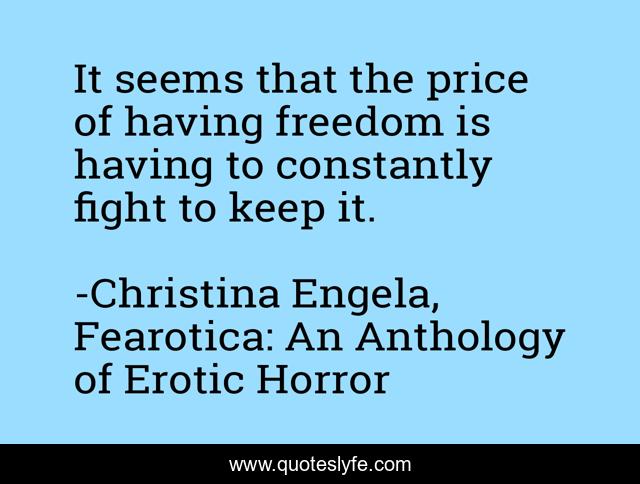 This page presents the quote "It seems that the price of having freedom is having to constantly fight to keep it.". Author of this quote is Christina Engela, Fearotica: An Anthology of Erotic Horror. This quote is about freedom, price, constantly-fight,.
