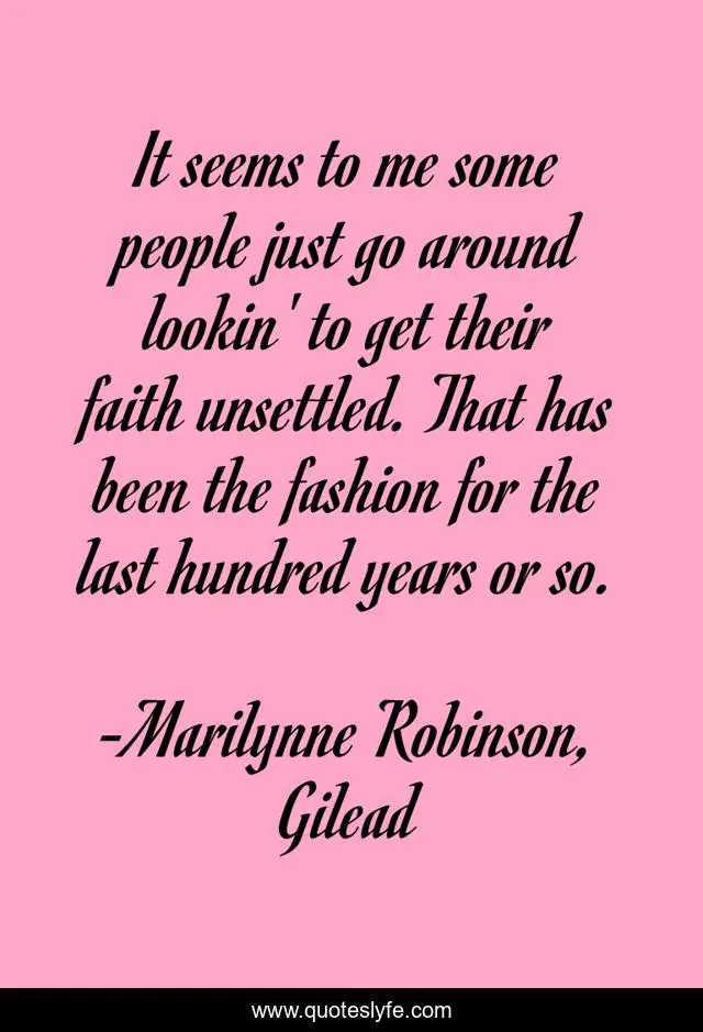 This page presents the quote "It seems to me some people just go around lookin' to get their faith unsettled. That has been the fashion for the last hundred years or so.". Author of this quote is Marilynne Robinson, Gilead. This quote is about faith, christianity, religion,.