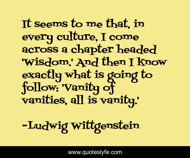 This page presents the quote "It seems to me that, in every culture, I come across a chapter headed 'Wisdom.' And then I know exactly what is going to follow: 'Vanity of vanities, all is vanity.'". Author of this quote is Ludwig Wittgenstein. This quote is about me, culture,.