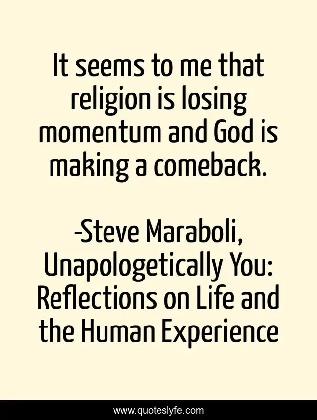 This page presents the quote "It seems to me that religion is losing momentum and God is making a comeback.". Author of this quote is Steve Maraboli, Unapologetically You: Reflections on Life and the Human Experience. This quote is about god, religion,.