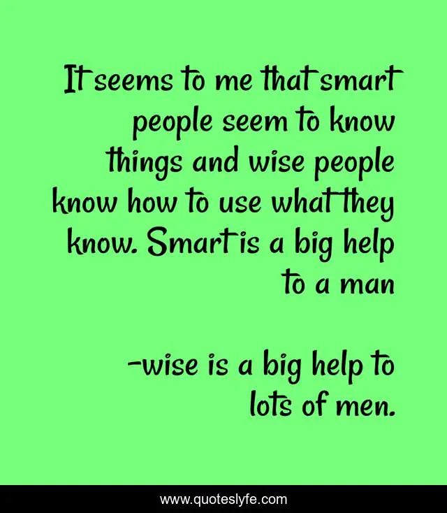 "wise is a big help to lots of men. Quotes." Quoteslyfe.com, 2025. Mon. 08 Dec. 2025. <https://www.quoteslyfe.com/quote/It-seems-to-me-that-smart-people-222278>.