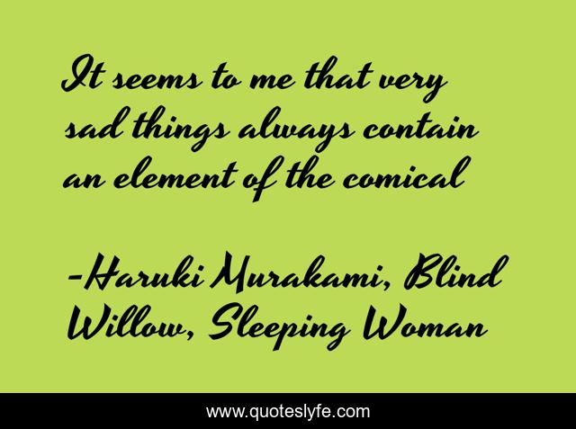 This page presents the quote "It seems to me that very sad things always contain an element of the comical". Author of this quote is Haruki Murakami, Blind Willow, Sleeping Woman. This quote is about comical, sad,.