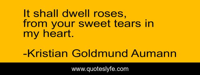 This page presents the quote "It shall dwell roses, from your sweet tears in my heart.". Author of this quote is Kristian Goldmund Aumann. This quote is about love, affection,.