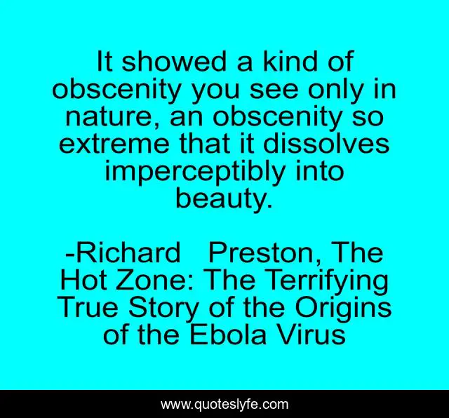 "Richard Preston, The Hot Zone: The Terrifying True Story of the Origins of the Ebola Virus Quotes." Quoteslyfe.com, 2025. Mon. 08 Dec. 2025. <https://www.quoteslyfe.com/quote/It-showed-a-kind-of-obscenity-you-72478>.