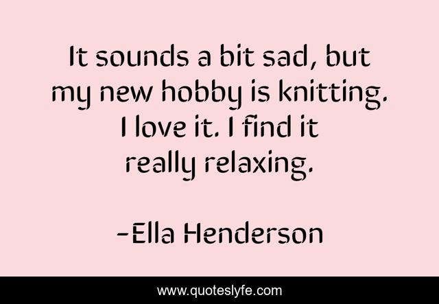 This page presents the quote "It sounds a bit sad, but my new hobby is knitting. I love it. I find it really relaxing.". Author of this quote is Ella Henderson. This quote is about new, love, affection, hobby,.