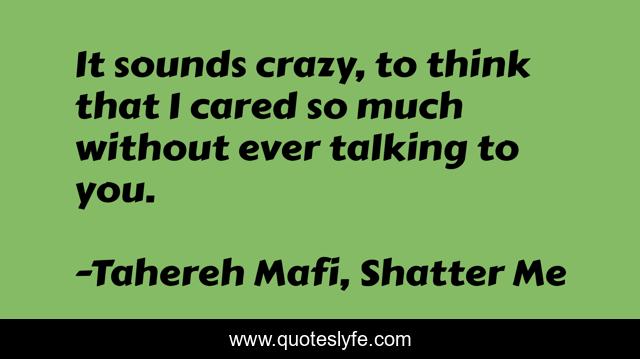 This page presents the quote "It sounds crazy, to think that I cared so much without ever talking to you.". Author of this quote is Tahereh Mafi, Shatter Me. This quote is about cared, adam-kent, crazy, love, affection,.