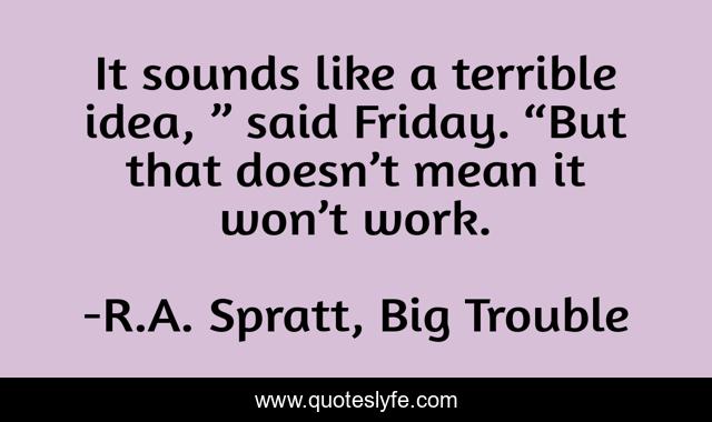 "R.A. Spratt, Big Trouble Quotes." Quoteslyfe.com, 2025. Mon. 08 Dec. 2025. <https://www.quoteslyfe.com/quote/It-sounds-like-a-terrible-idea-said-205193>.