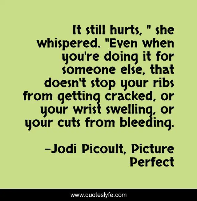 "Jodi Picoult, Picture Perfect Quotes." Quoteslyfe.com, 2025. Fri. 05 Dec. 2025. <https://www.quoteslyfe.com/quote/It-still-hurts-she-whispered-Even-when-178895>.