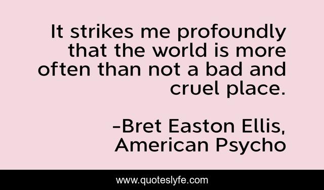 "Bret Easton Ellis, American Psycho Quotes." Quoteslyfe.com, 2025. Fri. 05 Dec. 2025. <https://www.quoteslyfe.com/quote/It-strikes-me-profoundly-that-the-world-90877>.