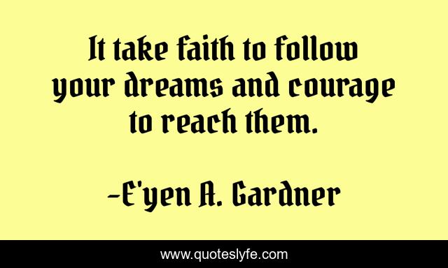 This page presents the quote "It take faith to follow your dreams and courage to reach them.". Author of this quote is E'yen A. Gardner. This quote is about faith, courage, dreams,.