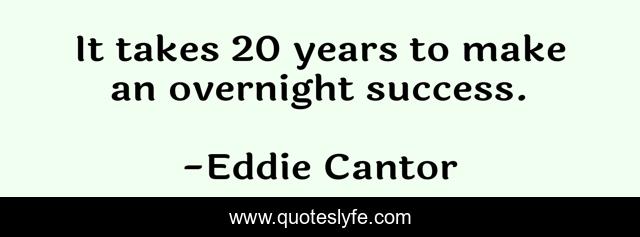 This page presents the quote "It takes 20 years to make an overnight success.". Author of this quote is Eddie Cantor. This quote is about overnight success, years,.