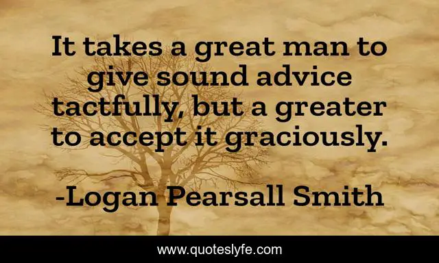 This page presents the quote "It takes a great man to give sound advice tactfully, but a greater to accept it graciously.". Author of this quote is Logan Pearsall Smith. This quote is about great, advice, man,.