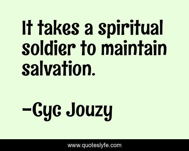This page presents the quote "It takes a spiritual soldier to maintain salvation.". Author of this quote is Cyc Jouzy. This quote is about life, bible, god, spiritual, demons, christianity, heaven, prayer, jesus,.