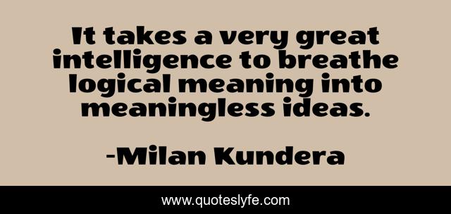 This page presents the quote "It takes a very great intelligence to breathe logical meaning into meaningless ideas.". Author of this quote is Milan Kundera. .