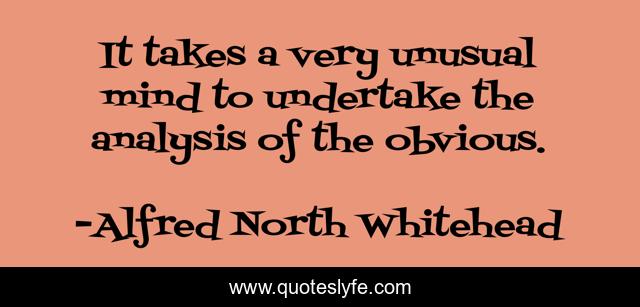 This page presents the quote "It takes a very unusual mind to undertake the analysis of the obvious.". Author of this quote is Alfred North Whitehead. .