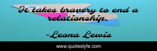 This page presents the quote "It takes bravery to end a relationship.". Author of this quote is Leona Lewis. This quote is about end, relationship, bravery,.