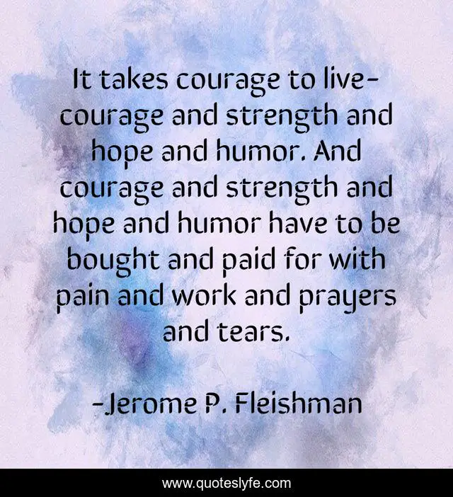 This page presents the quote "It takes courage to live-courage and strength and hope and humor. And courage and strength and hope and humor have to be bought and paid for with pain and work and prayers and tears.". Author of this quote is Jerome P. Fleishman. .
