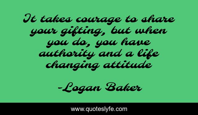 This page presents the quote "It takes courage to share your gifting, but when you do, you have authority and a life changing attitude". Author of this quote is Logan Baker. This quote is about god, poetry, christianity, inspirational, enthusiasm, theology,.