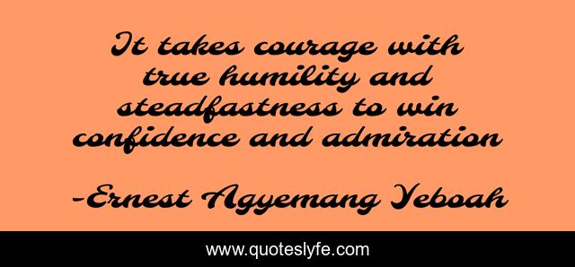 This page presents the quote "It takes courage with true humility and steadfastness to win confidence and admiration". Author of this quote is Ernest Agyemang Yeboah. This quote is about politics, steadfastness, leadership, true-humility,.
