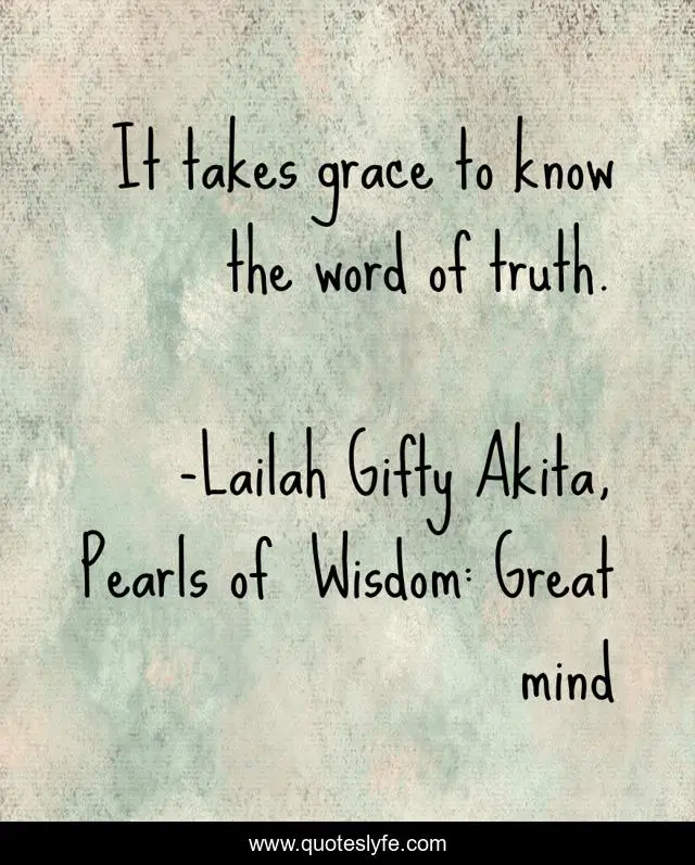 "Lailah Gifty Akita, Pearls of Wisdom: Great mind Quotes." Quoteslyfe.com, 2025. Fri. 05 Dec. 2025. <https://www.quoteslyfe.com/quote/It-takes-grace-to-know-the-word-84983>.