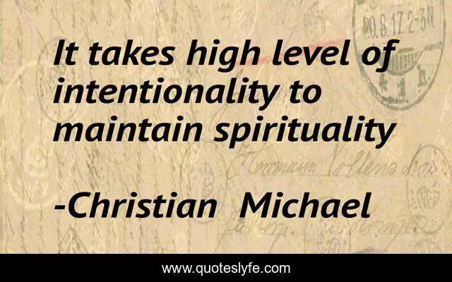 This page presents the quote "It takes high level of intentionality to maintain spirituality". Author of this quote is Christian Michael. .