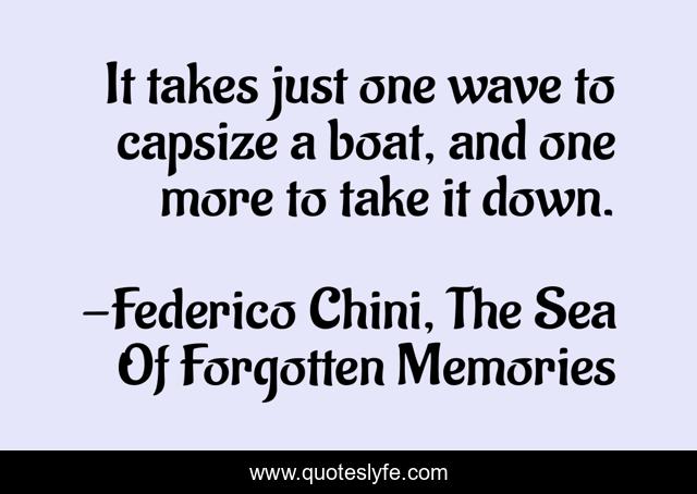"Federico Chini, The Sea Of Forgotten Memories Quotes." Quoteslyfe.com, 2025. Fri. 05 Dec. 2025. <https://www.quoteslyfe.com/quote/It-takes-just-one-wave-to-capsize-242059>.