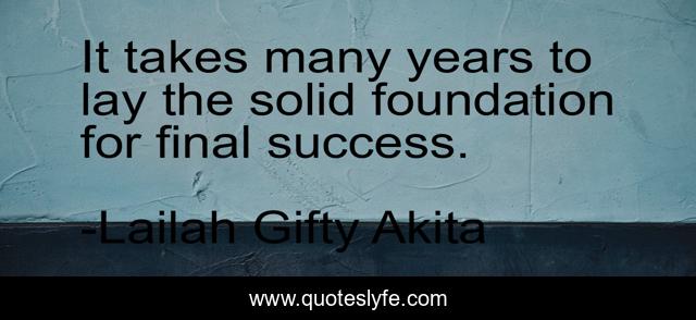 This page presents the quote "It takes many years to lay the solid foundation for final success.". Author of this quote is Lailah Gifty Akita. This quote is about education, determination, success,.
